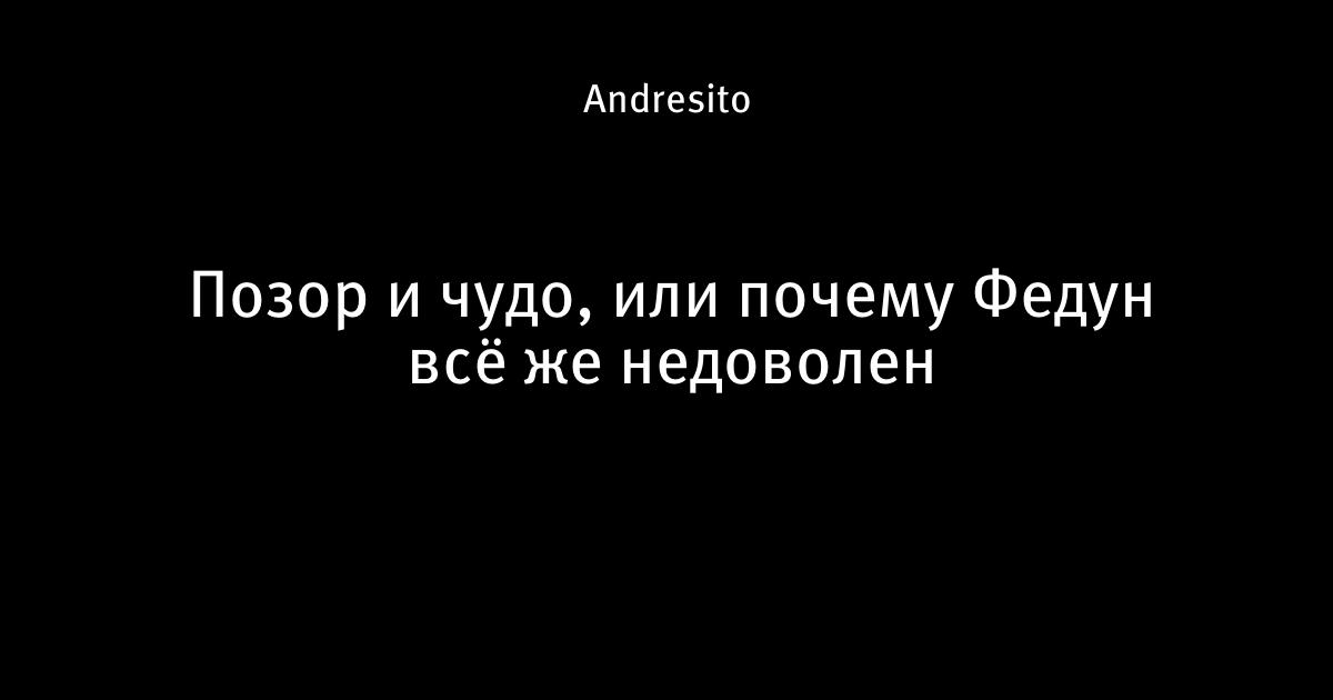 Чудо же Федун увидел в «Ростове». Однако тут стоит отметить, что он оказался ослеплён этим чудом и не увидел главной особенности, которая состоит вот в чём: ростовско-бердыевское чудо, состоящее из попадания в ЛЧ и борьбы за титул до последнего, оно чудо исключительно для «Ростова». Федун же судя по всему, считает, что раз «Ростов», который должен был занимать место 8-10, совершил чудо и стал вторым (и едва ли не первым), то если это чудо переместить в «Спартак», который занимает 5-6 места, то «Спартак» ну просто однозначно станет чемпионом. Ведь это просто, как дважды два минус десять процентов. Банальная математика.