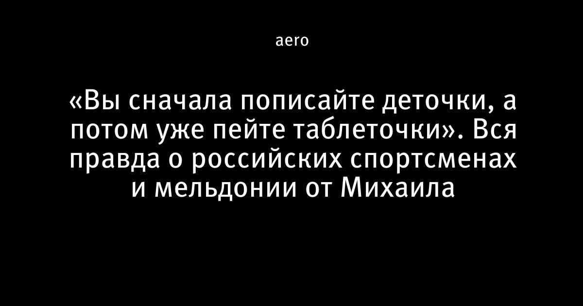 25 мая 2016, 21:19 «Вы сначала пописайте деточки, а потом уже пейте таблеточки». Вся правда о российских спортсменах и мельдонии от Михаила 1 Автор aero Этот пост опубликован в блоге на Трибуне Sports.ru. Присоединяйтесь к крупнейшему сообществу спортивных болельщиков! Другие посты блога Вы это видели?