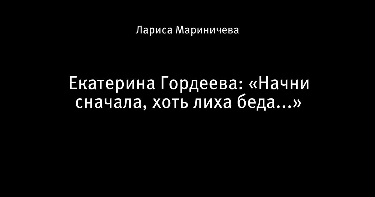 Екатерина Гордеева: «Начни сначала, хоть лиха беда...»