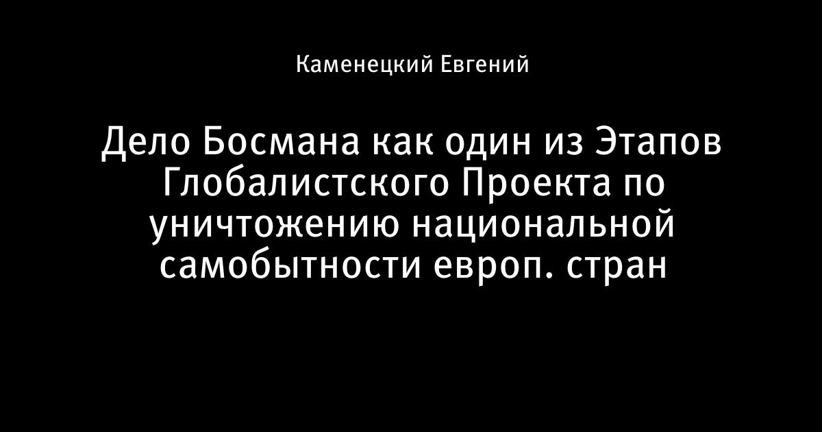 Дело Босмана как один из Этапов Глобалистского Проекта по уничтожению национальной самобытности европ. стран