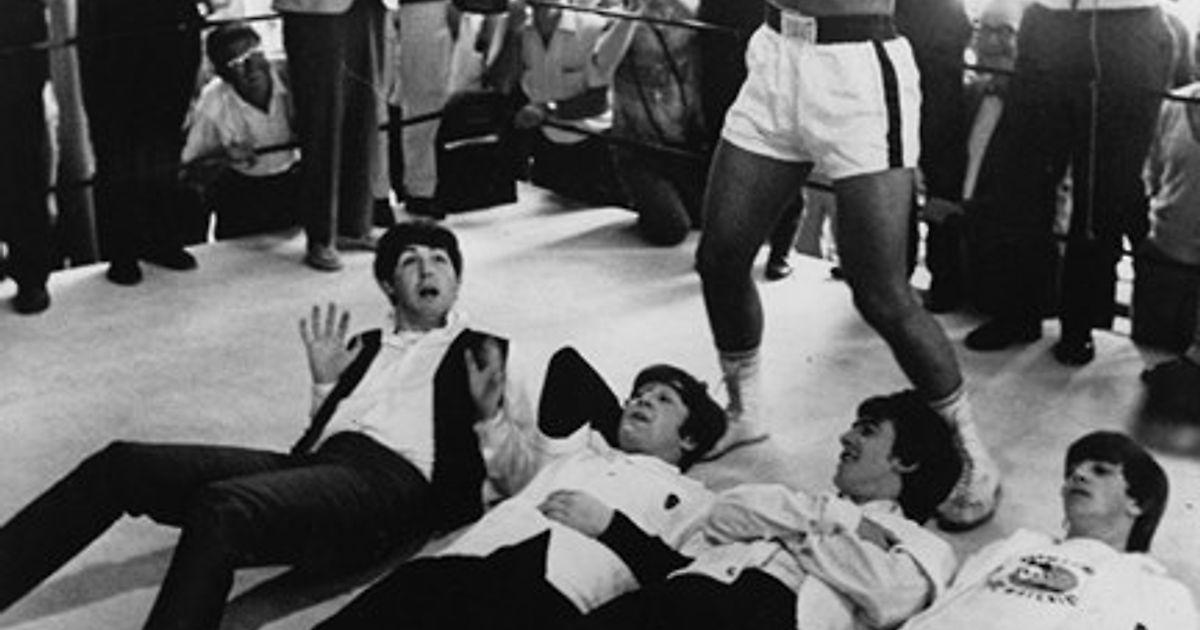 «Битлз» фотографируются с Клеем во время тура по Америке.