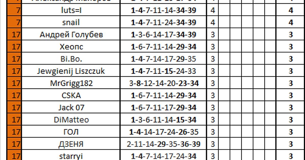 Сыграли варианты: 1-4-8-10-15-23-26-29-34-36-39-40