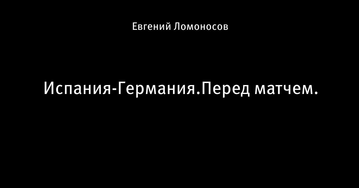 Выскажу свое мнение. В этом матче буду переживать за испанцев. Немцев я никогда особо не любил, просто вспоминается 45-ый год, представляю как мои дедушки воевали...Возможно это неправильно,но это не забудется никогда, это вечная боль. Я знаю много людей в нашей стране, которые так же не любят немцев.А может я просто никогда не бывал в Германии?Может побываю и изменю свое мнение? Почему бы и нет. Ну а пока буду ждать матча, игра в любом случае получится интересной, возможно будет драма, а может найдутся новые герои. Только бы это не стало комедией)