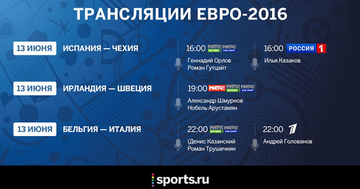 Трансляции Евро-2016. 13 июня