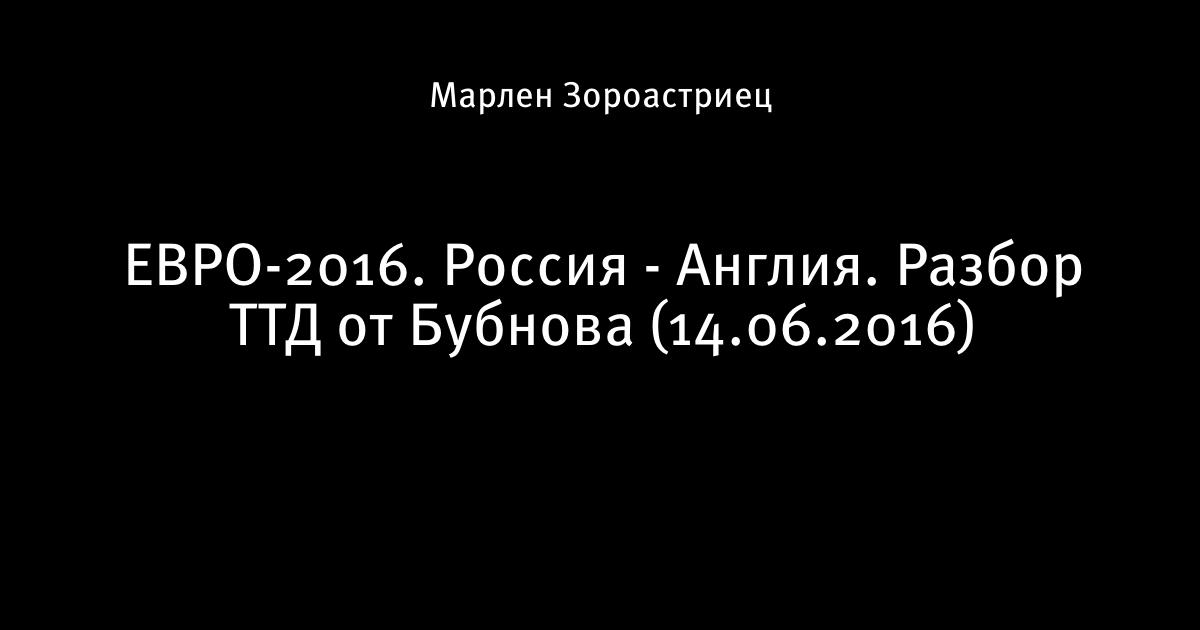 ЕВРО-2016. Россия - Англия. Разбор ТТД от Бубнова (14.06.2016)