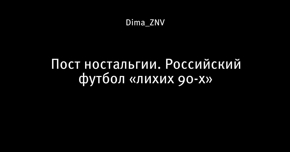 В данной статье предлагаю вспомнить, каким был наш, отечественный, футбол в первые 10 лет существования независимой России. Внимание! Посетителям моложе 1995-го года рождения вход строго запрещён!