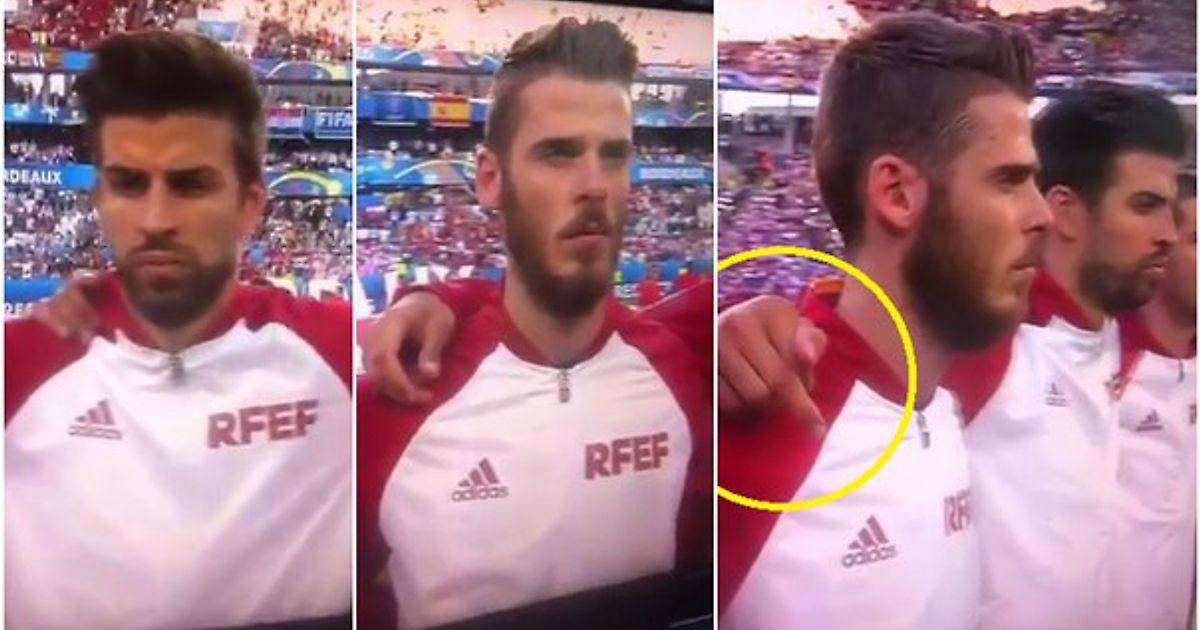 Итак, вопрос, куда направлен палец Пике? Вниз и вбок.
