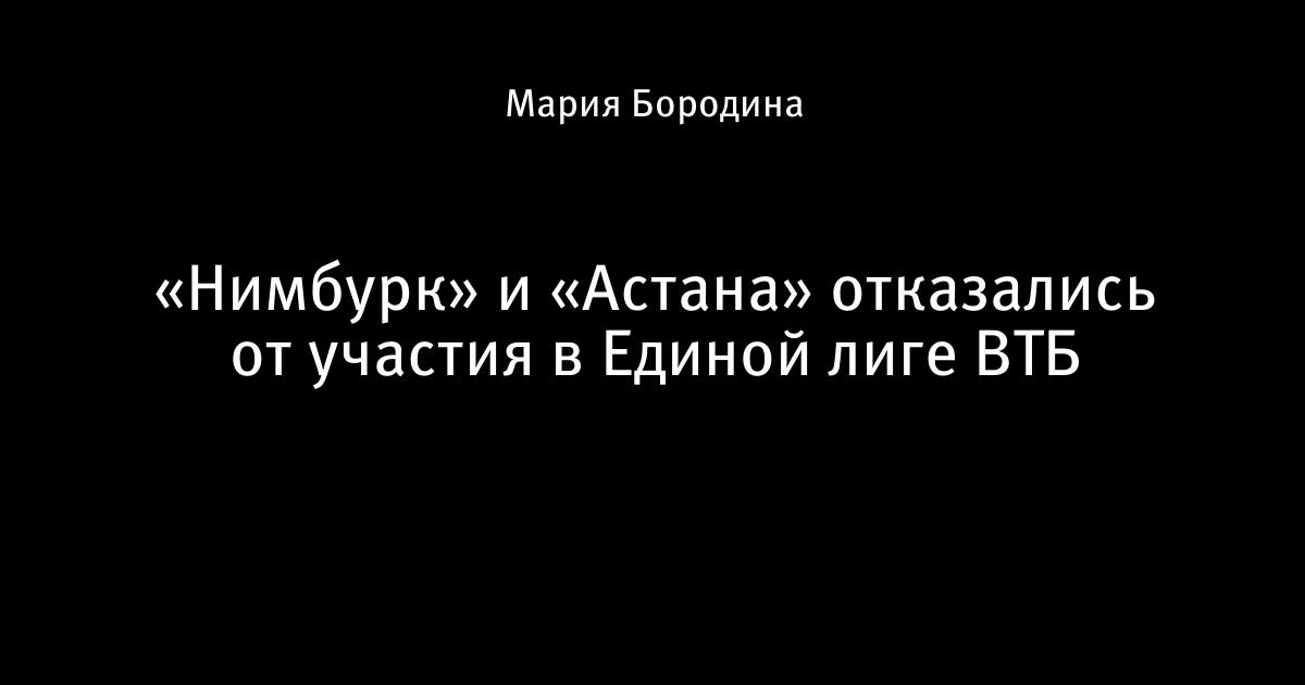 По информации «Известий», еще два иностранных клуба решили выйти из Единой лиги ВТБ. К латвийскому ВЭФу и грузинской «Вите» присоединятся чешский «Нимбурк» и казахстанская «Астана». Команды сосредоточатся на выступлении во внутренних чемпионатах. Об этом рассказал источник «Известий» в Единой лиге. «Нимбурк» в прошедшем сезоне стал 13-кратным чемпионом Чехии, а «Астана» уступила в финальной серии клубу «Барсы Атырау» (0-3).