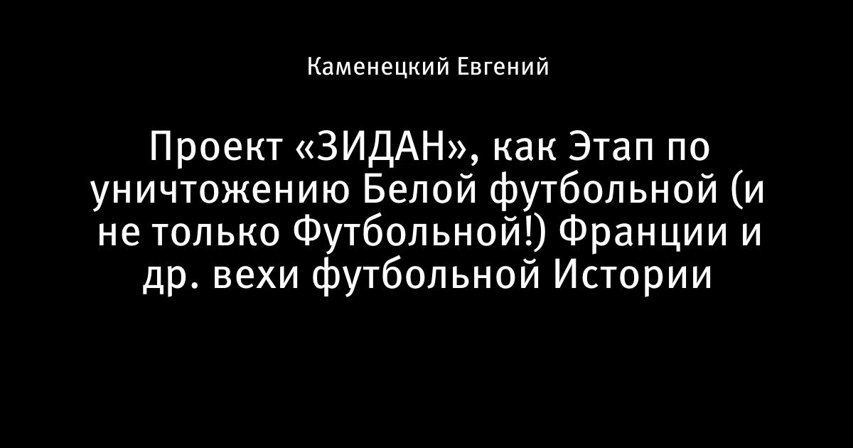 Проект "ЗИДАН", как Этап по уничтожению Белой футбольной (и не только Футбольной!) Франции и другие вехи футбольной Истории ...