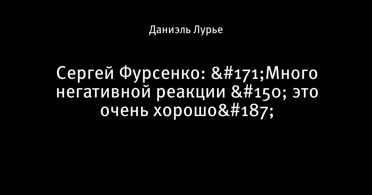 Сергей Фурсенко: «Много негативной реакции это очень хорошо»