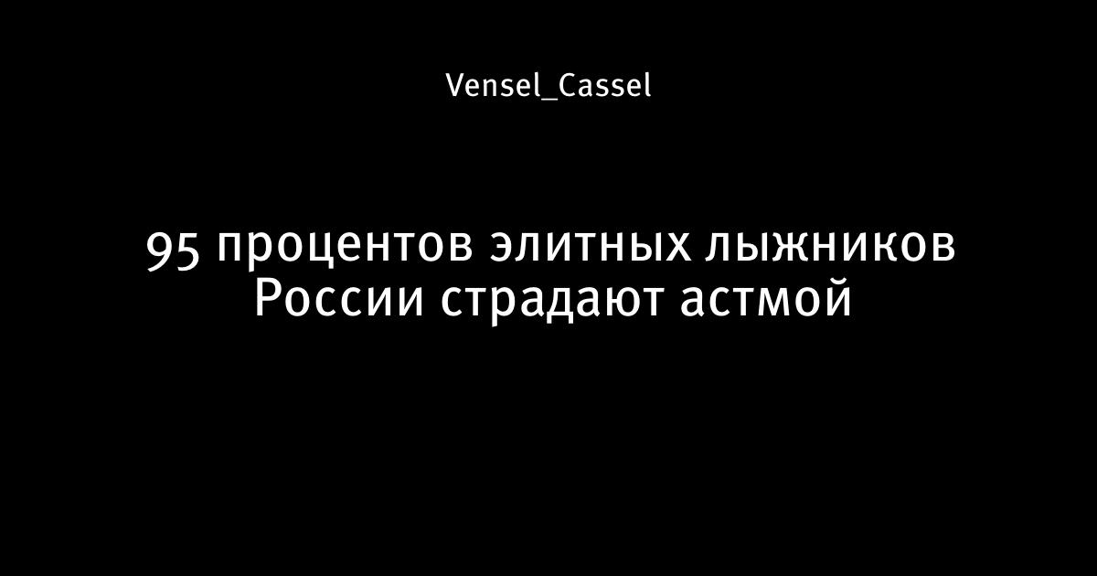 ИТАР-ТАСС, 1 июня 2010 По словам профессора НИИ пульмонологии ФБМА России Заурбека Айсанова, "95 процентов элитных спортсменов страдают бронхиальной астмой". Он пояснил, что речь идет, прежде всего, о таких видах спорта, как лыжи. "Это серьезная проблема, мы ее детально изучаем, особенно учитывая предстоящие Сочи-2014", - сказал профессор. При этом он отметил, что сейчас "астма резко изменилась". Эксперт разъяснил, что на сегодняшний день эта болезнь успешно контролируется с помощью современных средств.