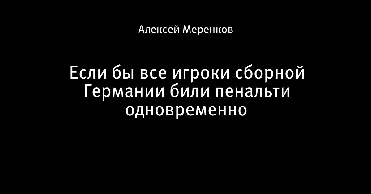 4 июля 2016, 20:40 Если бы все игроки сборной Германии били пенальти одновременно Автор Алексей Меренков Этот пост опубликован в блоге на Трибуне Sports.ru. Присоединяйтесь к крупнейшему сообществу спортивных болельщиков! Другие посты блога Телевизор 3.0 Сборная Германии по футболу Евро-2016 Сборная Италии по футболу
