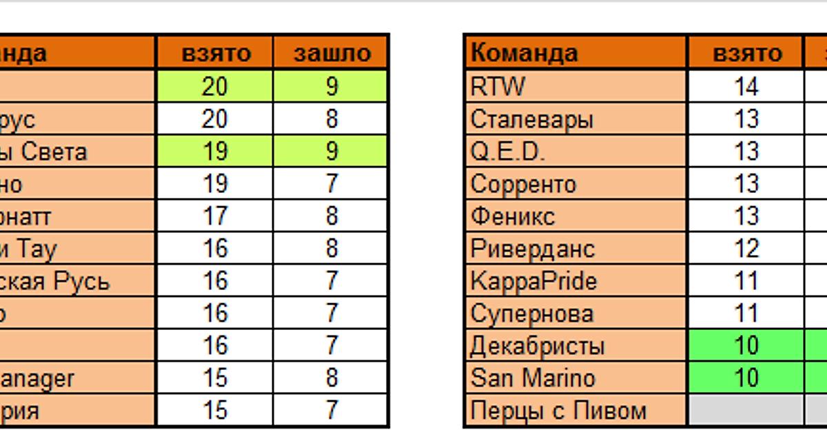 Команды, использовавшие наименьшее число вариантов: Декабристы и San Marino (по 10 вариантов)