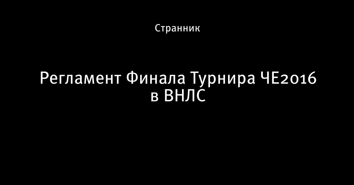 Предлагаю Вашему вниманию регламент ФИНАЛА нашего турнира ЧЕ-2016 в ВНЛС: