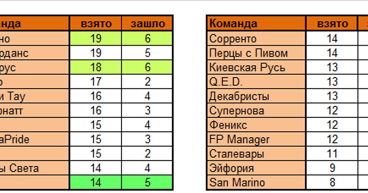 У большинство команд, выбивших 3 варианта, встречается именно эта комбинация. Впрочем, и "2-ку" захватили всего 23 игрока из 110. А у Декабристов, например, нету 24, зато есть единичный 12. А 5 команд не смогли угадать 3 вариантов, игроки San Marino не ожидали от МДП каких-либо подвохов, строго сыграли по 3-6-11-14-29 и зацепили только 14. С карточками тоже промахнулись. 35 предполагали немногие, лишь 16 человек из 110, при этом две команда сочли его основным, это Интер и Сорренто. 14-35 - всё, что угадали "интеристы", но и этого хватило, чтобы одолеть Феникс. Коллективный разум "птичек" дал осечку, верными мыслями были только варианты 14 и 24. А "интербригада" размахнулась серьёзно, на 17 вариантов. 18 в сумме у игроков Эльбруса, из 6 они смогли извлечь пользу. В частности, rashh был единственным, кто включил "26", причём страховкой ставил "6", "5-ку" добавить не рискнул. Зато она есть на линии Lux'a. "Горцы" вообще играли семью исходными вариантами, отбросили только 4 и 8. Свой матч они в итоге свели вничью. Минги Тау, RTW и Хатифнатт с 16 игровыми вариантами не проиграли. Дальше уже большое число сгоревших вариантов сказывается сильнее. Верной оказалась тактика Q.E.D. с миксом 1-7 и 2-5 на разных линиях.