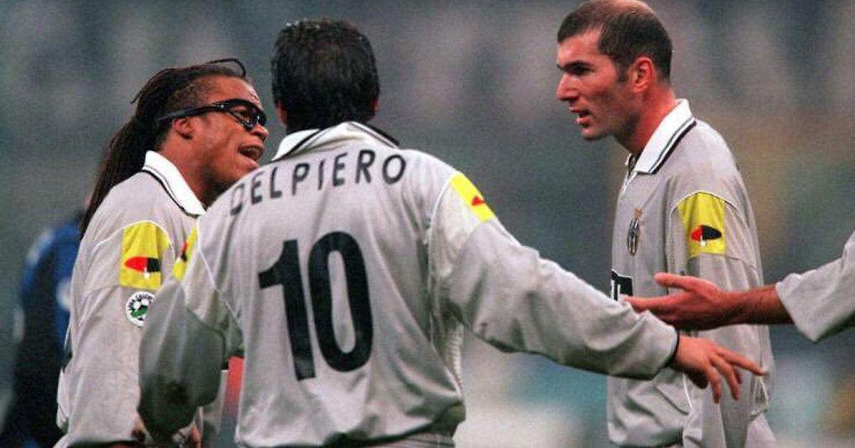 Juventus teammates Edgar Davids, Alessandro Del Piero & Zinedine Zidane in discussion. 2000/01