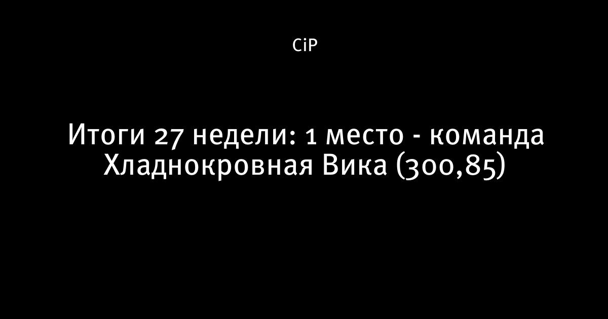 Итоги 27 недели: 1 место - команда Хладнокровная Вика (300,85)