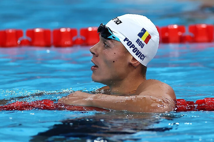 Этот парень – особенный. В 2022-м на тот момент 17-летний румын сделал золотой дубль, выиграв 100 и 200 кролем на чемпионате мира. Для плавания это редкая связка, дистанции критически разные. До Поповича на чемпионатах мира такое исполняли лишь раз: Джим Монтгомери в брежневские времена – в 1973-м.