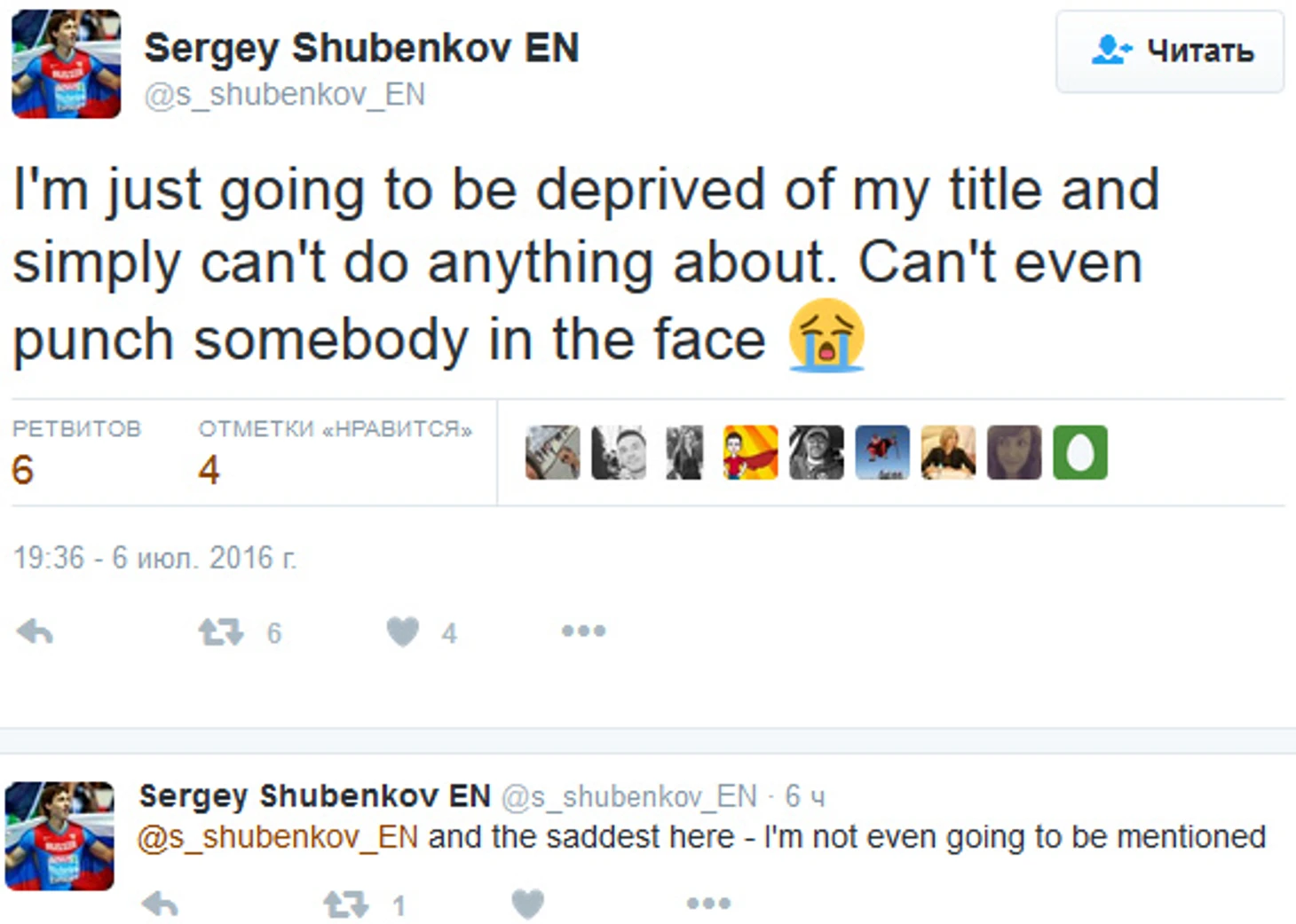 «В скором времени лишусь своего титула, и не могу ничего с этим поделать. Даже не могу ударить кого-нибудь в лицо. И самое печальное – обо мне даже не будут вспоминать», – написал Шубенков.