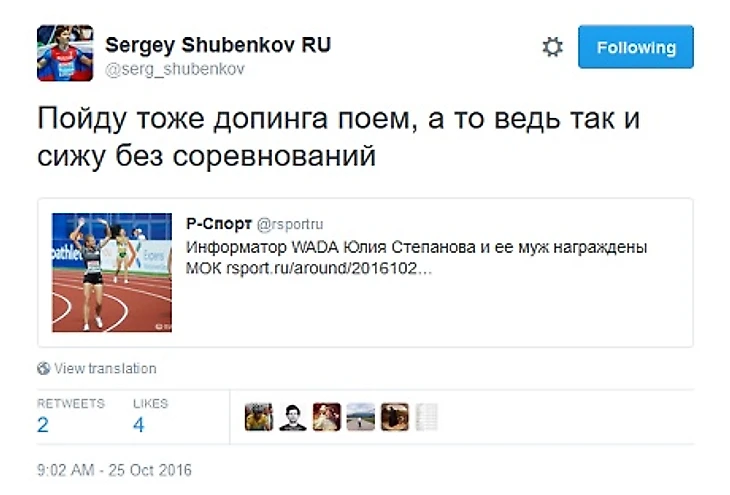 Сергей Шубенков: «Пойду тоже допинга поем, а то ведь так и сижу без соревнований»