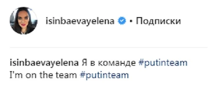 Двукратная олимпийская чемпионка Елена Исинбаева сообщила о вступлении в Putin Team.