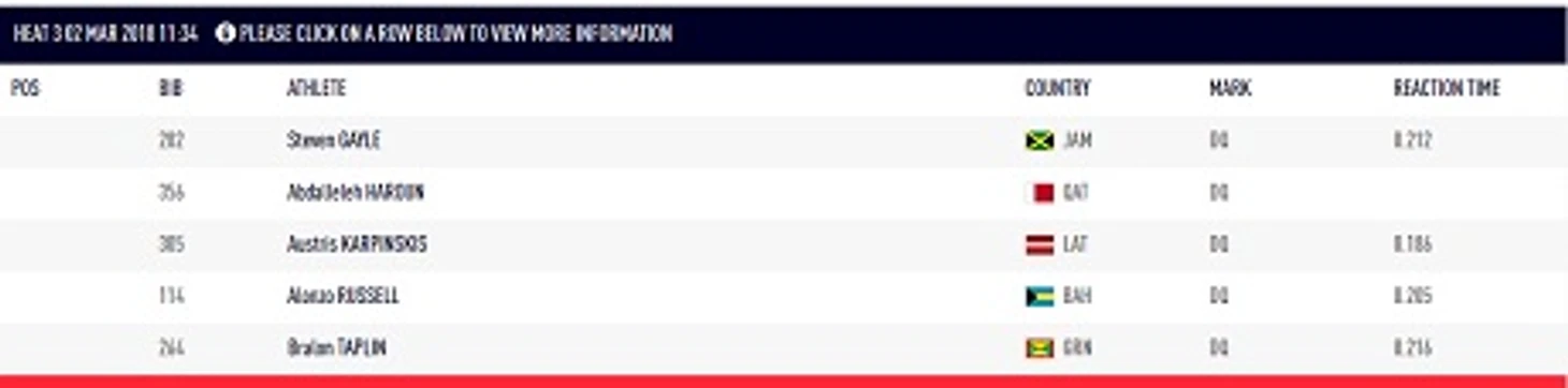Все участники третьего забега были дисквалифицированы, что случилось впервые в истории крупнейших турниров по легкой атлетике.