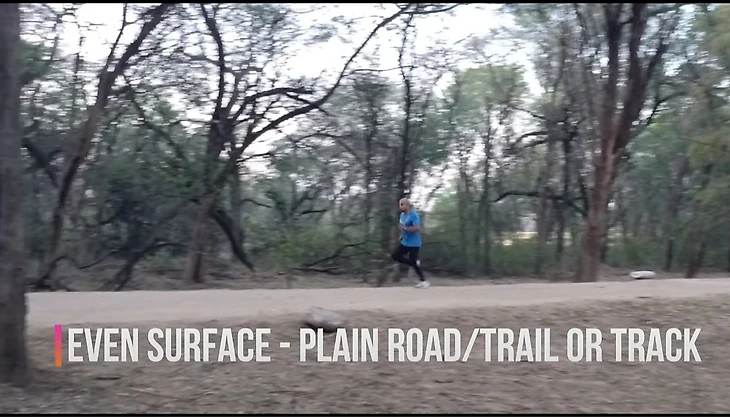 Темповый бег должен выполняться на ровной поверхности, желательно на такой как грунтовая дорога, или на ровных просёлочных дорогах или парковых / лесных [укатанных] тропах, поскольку темп должен быть стабильным на протяжении всей тренировки с небольшими отклонениями.