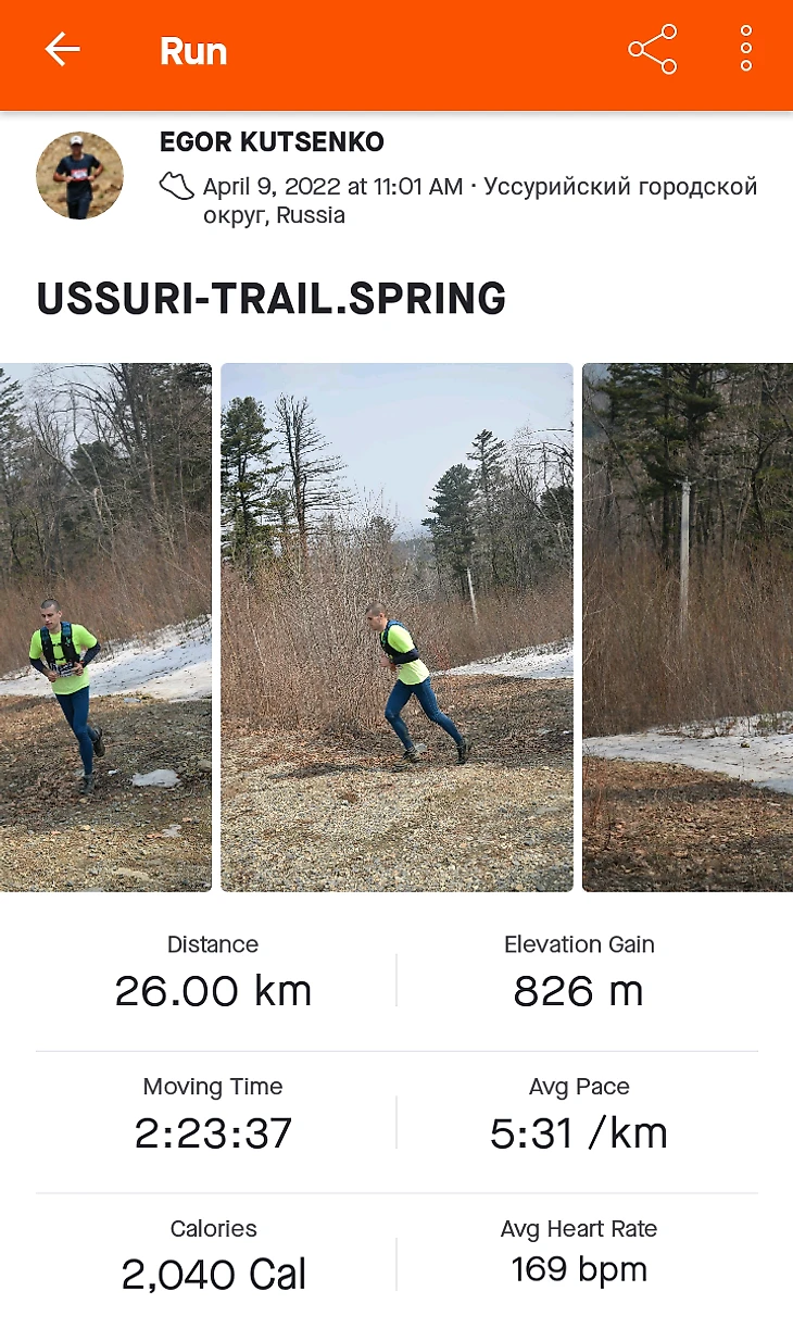 Девятого апреля 2022 года принял участие в первой из четырёх трейловых гонок серии "Уссури-трейл. Времена года-2022". Выбрал классическую длинную дистанцию, протяженностью 26 километров, характеризующейся уникальной красотой и динамичностью и множеством неожиданных препятствий, которые ещё больше придавали интереса и азарта.