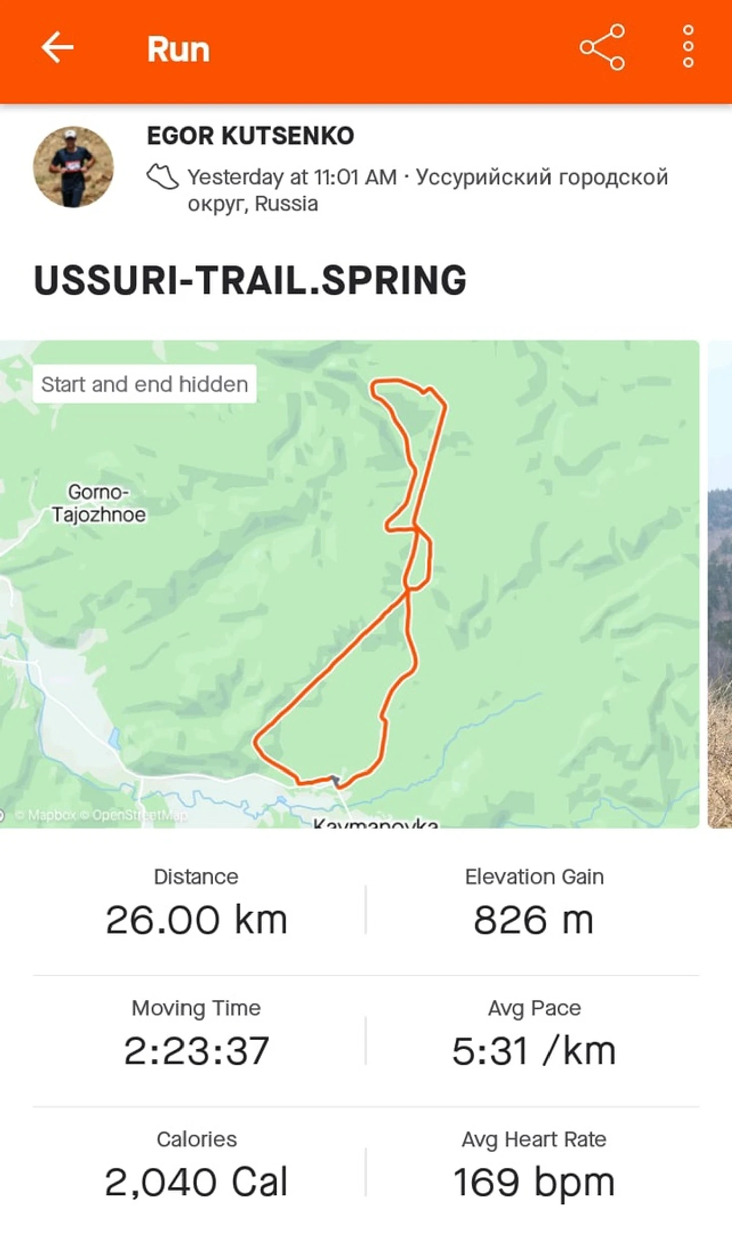 Перед Уссури-трейл" Весна я внимательно изучил предоставленные организаторами в беговом сервисе STRAVA (к которому, к большому сожалению затруднен доступ из России) треки дистанций, чтобы в дальнейшем по минимуму возникало вопросов в области ориентирования. Также, тем, у кого была техническая возможность можно было загрузить трек дистанции в спортивные смарт-часы для полной уверенности.