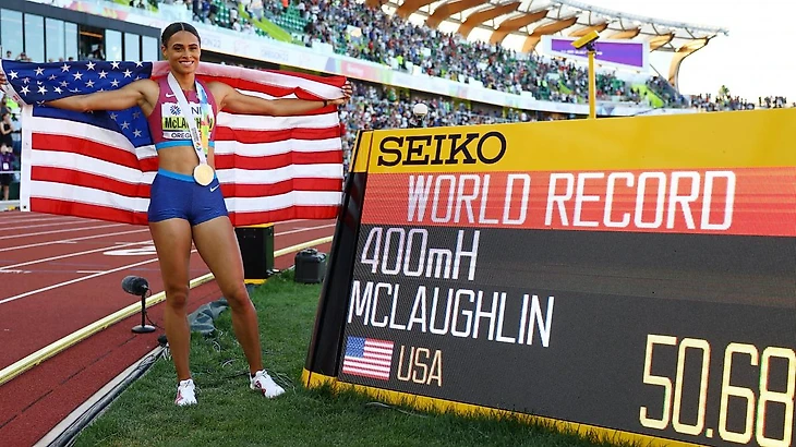 22-летняя американка пробежала дистанцию 400 м с барьерами за 50,68 с. Она стала первой спортсменкой в истории, преодолевшей дистанцию быстрее 51 с.