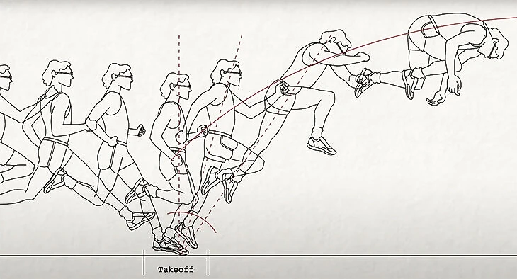 Дело в том, что самая типичная ошибка прыгунов в длину при стандартном отталкивании — остановка плечей на планке. Из-за этого теряется горизонтальная скорость и падает дальность прыжка. Но чтобы прокрутить сальто, плечи должны двигаться вперед, иначе вы не скрутите оборот. Это заставляет спортсмена не останавливаться и позволяет полностью сохранить горизонтальную скорость.