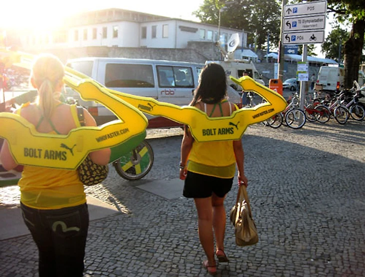 От Бранденбургских ворот до «Олимпийского стадиона» минут тридцать на метро, но эти тридцать минут тянулись целую вечность. Болельщики колонной шли к «Олимпиаштадион». Фанатов Болта несложно опознать. Ямайские флаги, регги, улыбки � всего было в достатке.