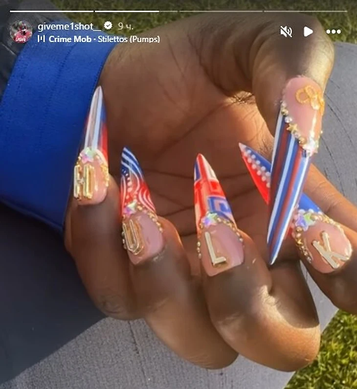 Вот такие ногти под Олимпиаду – толкать ядро, видимо, не мешают: