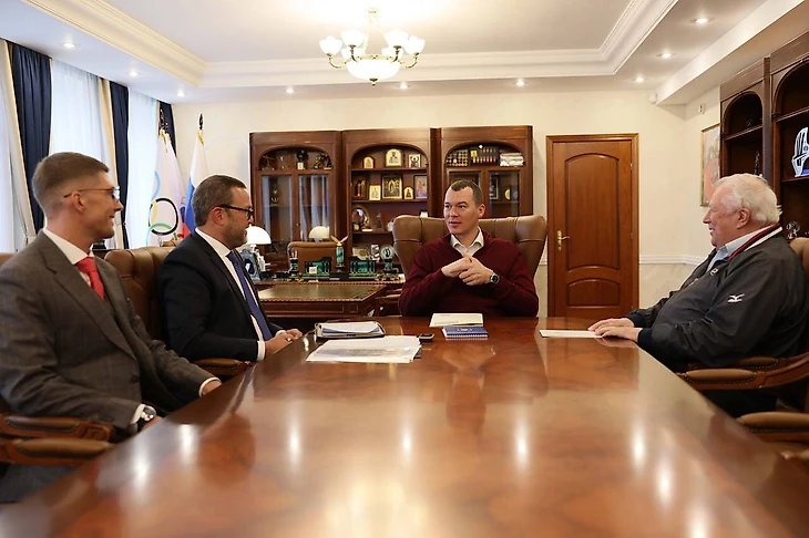 Вообще, у Дегтярева два кабинета – соответственно должностям. В министерстве спорта это просторный зал в желтых тонах с обилием мрамора. Сначала из важных деталей в кабинете были лишь герб России и портрет президента.