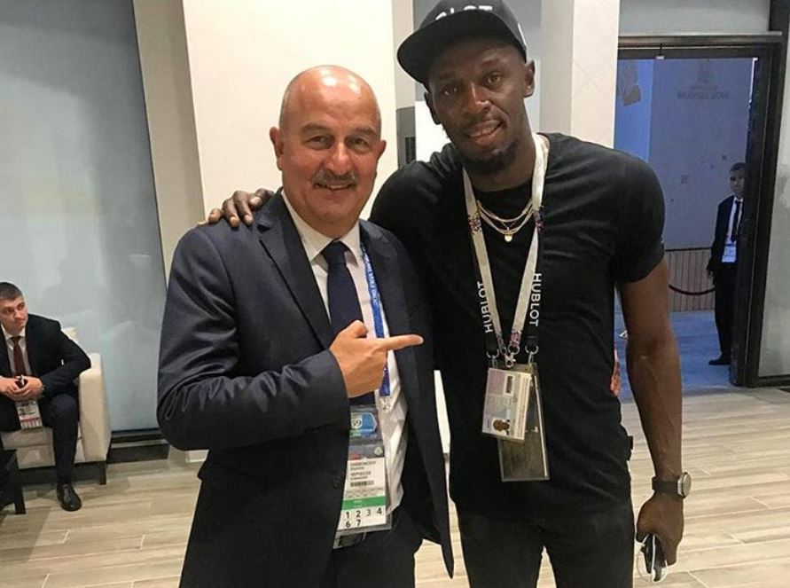 Россия-2025 / Черчесов сфотографировался с Болтом в Москве, поставив эмодзи с мячом