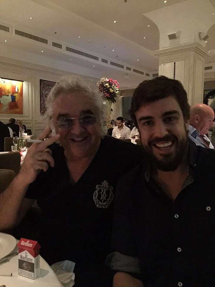 Алонсо разместил в твиттере фотографию со своим другом Флавио Бриаторе, который держит в руке незажженную сигарету, а на столе стоит пачка Marlboro, бренда Philip Morris.