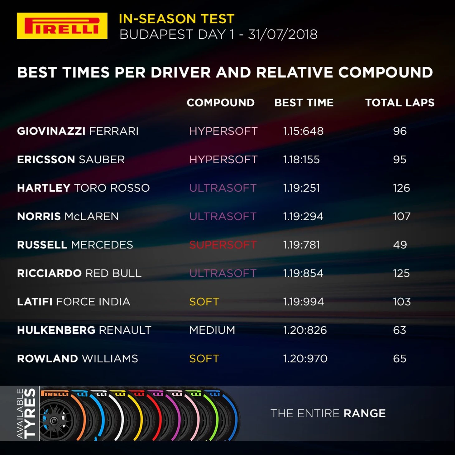 Тесты. Хунгароринг. 1-й день. Джовинацци – первый, Эрикссон – второй, Хартли – третий
