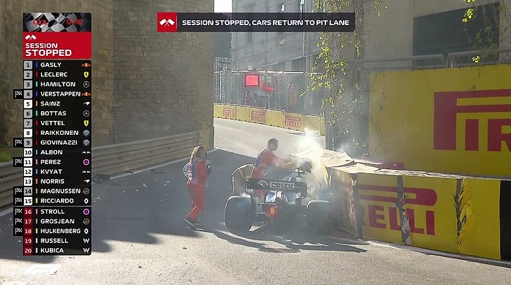 Пилот «Уильямса» Роберт Кубица попал в аварию на последних минутах первого сегмента квалификации к Гран-при Азербайджана. Сессия была остановлена красными флагами.