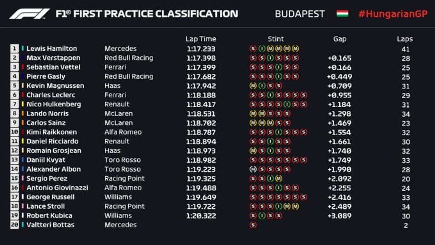Гран-при Венгрии-2019. 1-я практика. Хэмилтон – первый, Ферстаппен – второй, Феттель – третий, Квят – 13-й