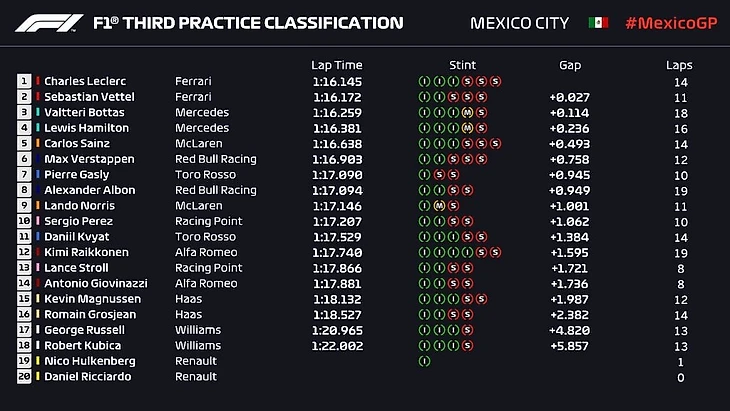 Гран-при Мексики-2019. 3-я практика. Леклер – первый, Феттель – второй, Боттас – третий, Квят – 11-й