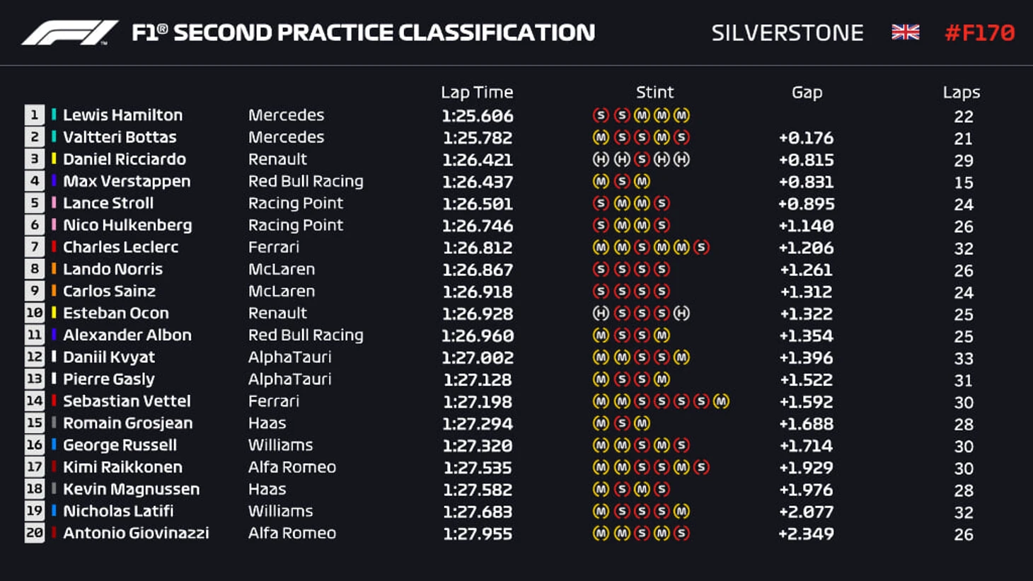 Гран-при 70-летия «Ф-1». 2-я практика. Хэмилтон – первый, Боттас – второй, Риккардо – третий, Квят – 12-й