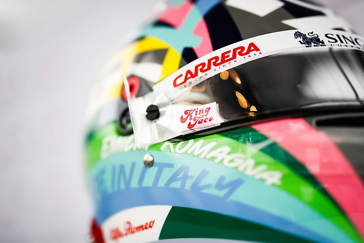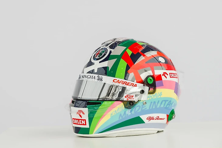 Пилот «Альфа Ромео» Антонио Джовинацци показал новый дизайн шлема. Дизайн был разработан специально под Гран-при Эмилии-Романьи в Имоле – который является домашним для итальянского гонщика.