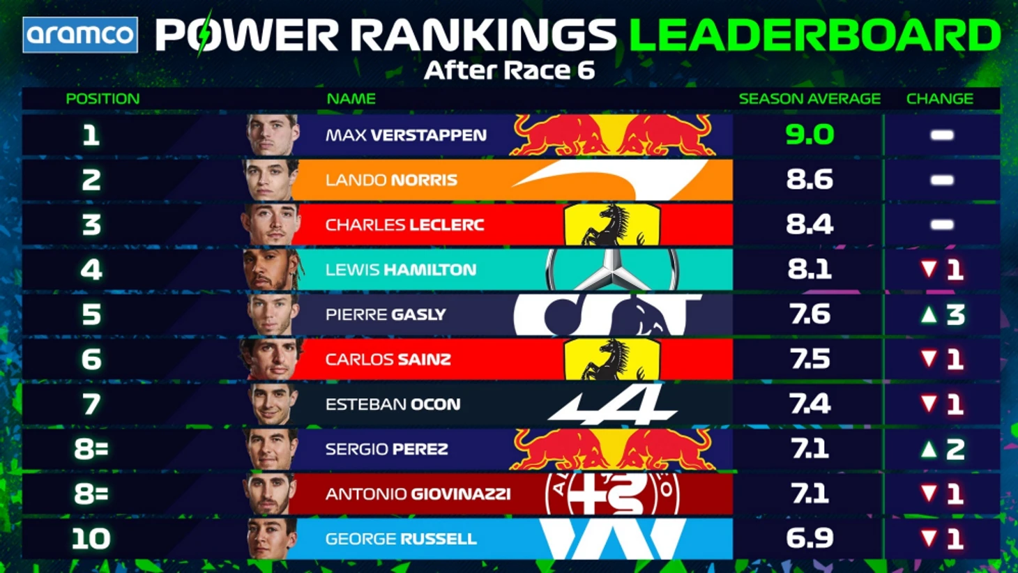 В общем зачете Ферстаппен сохранил лидерство, в наибольшего прогресса добился Гасли – переместившись с 8-й на 5-ю позицию.