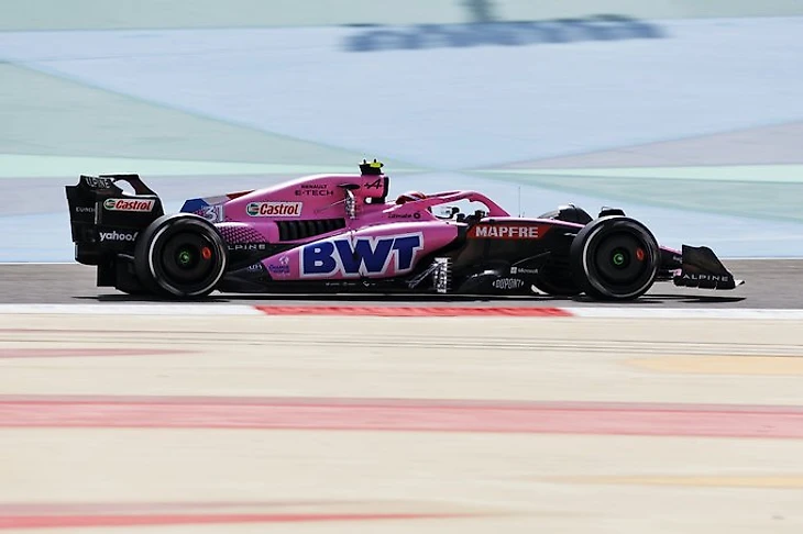 «Альпин» использует ливрею розового цвета по ходу второго дня тестов в Бахрейне