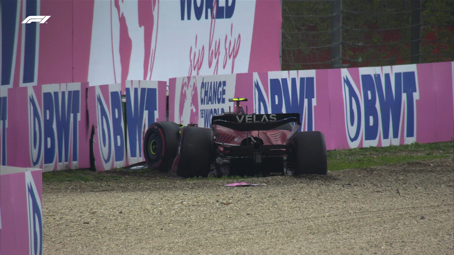 Гонщик «Феррари» Карлос Сайнс попал в аварию в квалификации к Гран-при Эмилии-Романьи.