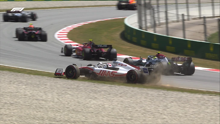 Льюис Хэмилтон («Мерседес») и Кевин Магнуссен («Хаас») столкнулись на первом круге Гран-при Испании.