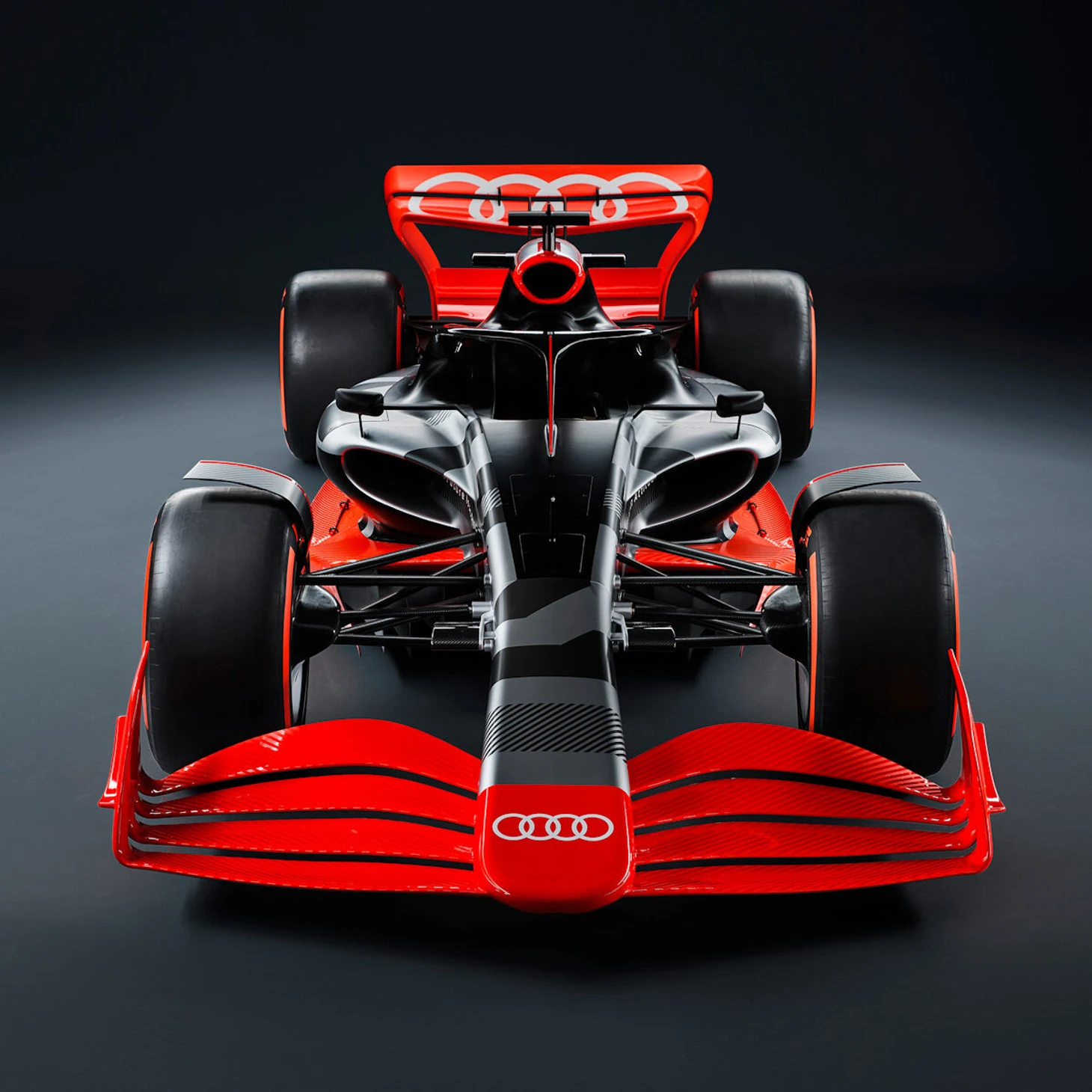 «Ауди» продемонстрировала, как выглядела бы ее ливрея на примере машины «Формулы-1» текущего поколения.