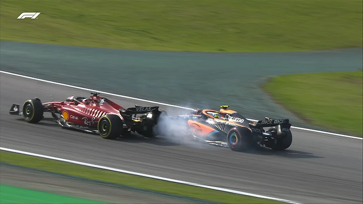 Шарль Леклер и Ландо Норрис столкнулись на Гран-при Сан-Паулу после рестарта.