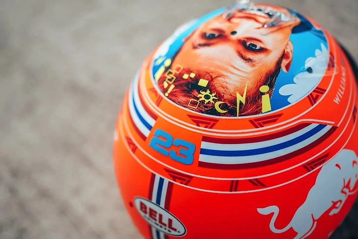 Албон показал шлем в стиле Валентино Росси, который не смог использовать в 2022 году