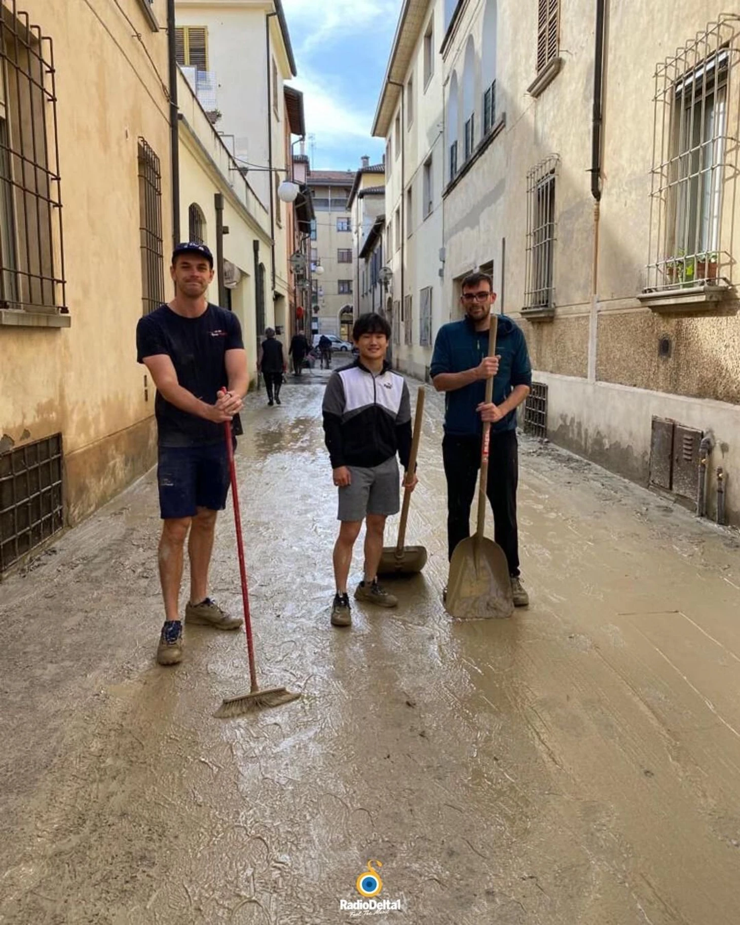 Цунода помог убрать улицы Фаэнцы после наводнения